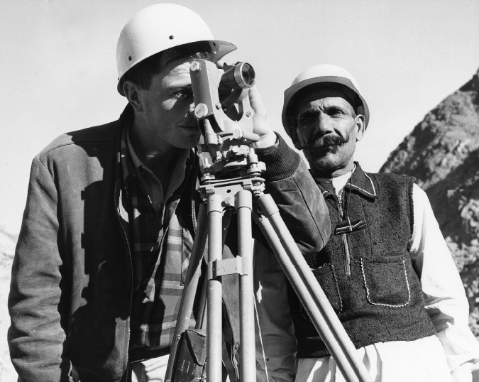 Canadian engineer Gilles Tenner with his unidentified Pakistani tribesman assistant at the site of the country’s signature Canadian project under the Colombo Plan, the Warsak Hydroelectric and Irrigation Project. (Source: National Film Board, LAC e999920074-u)