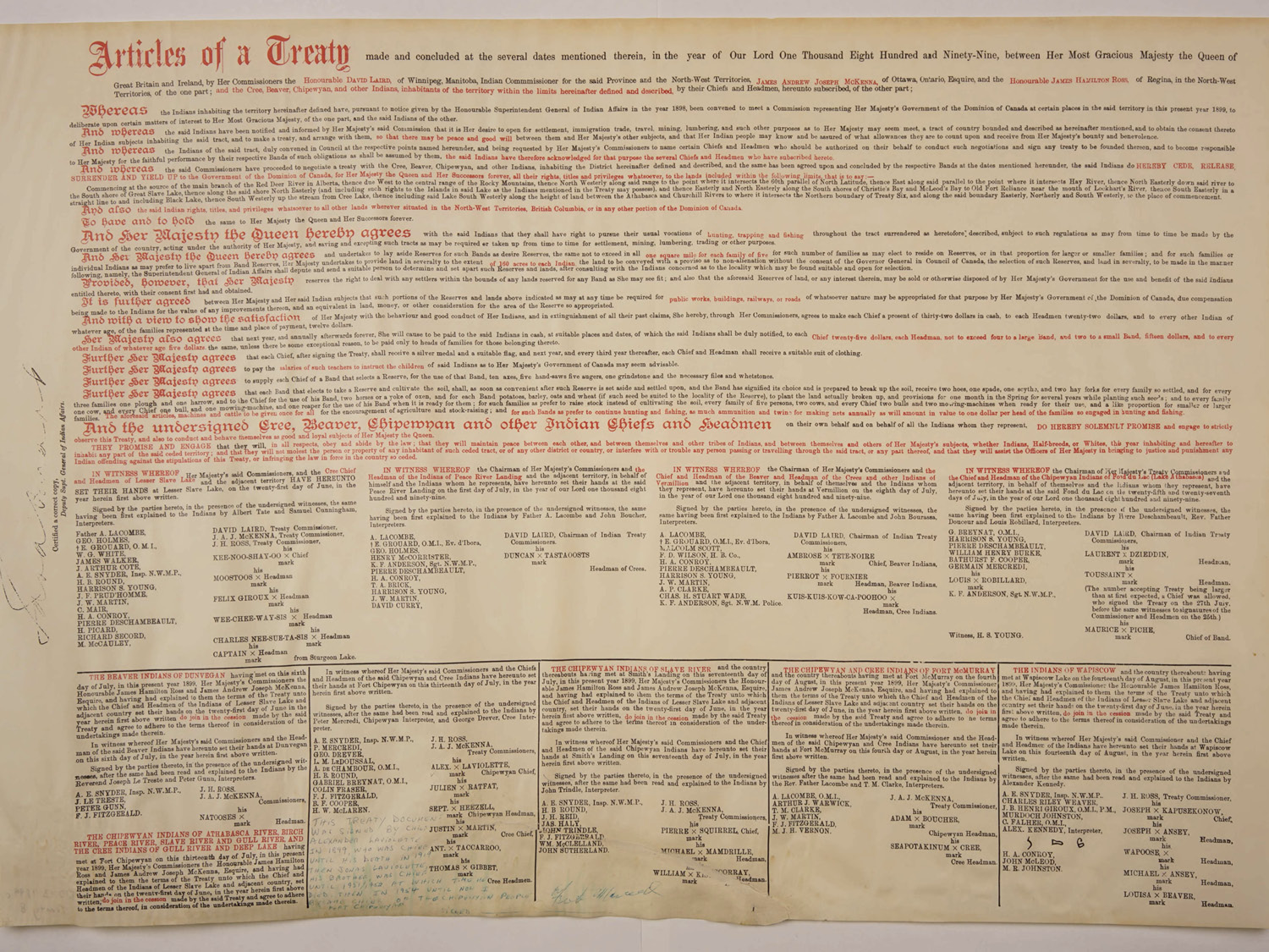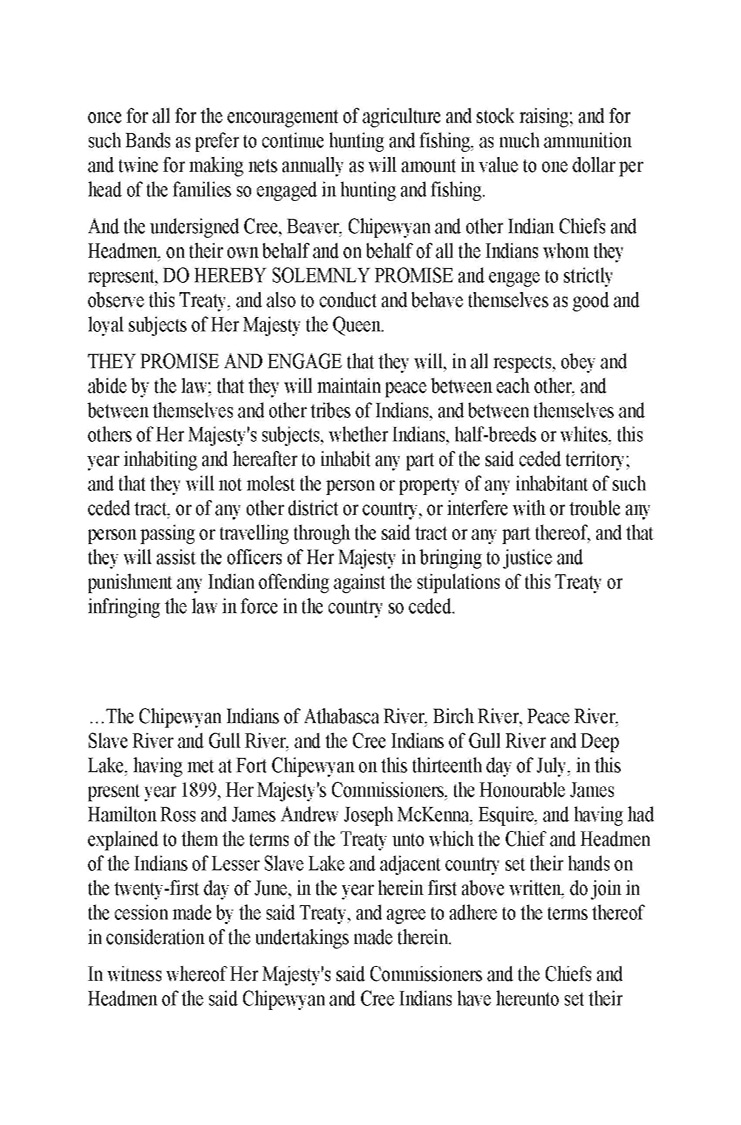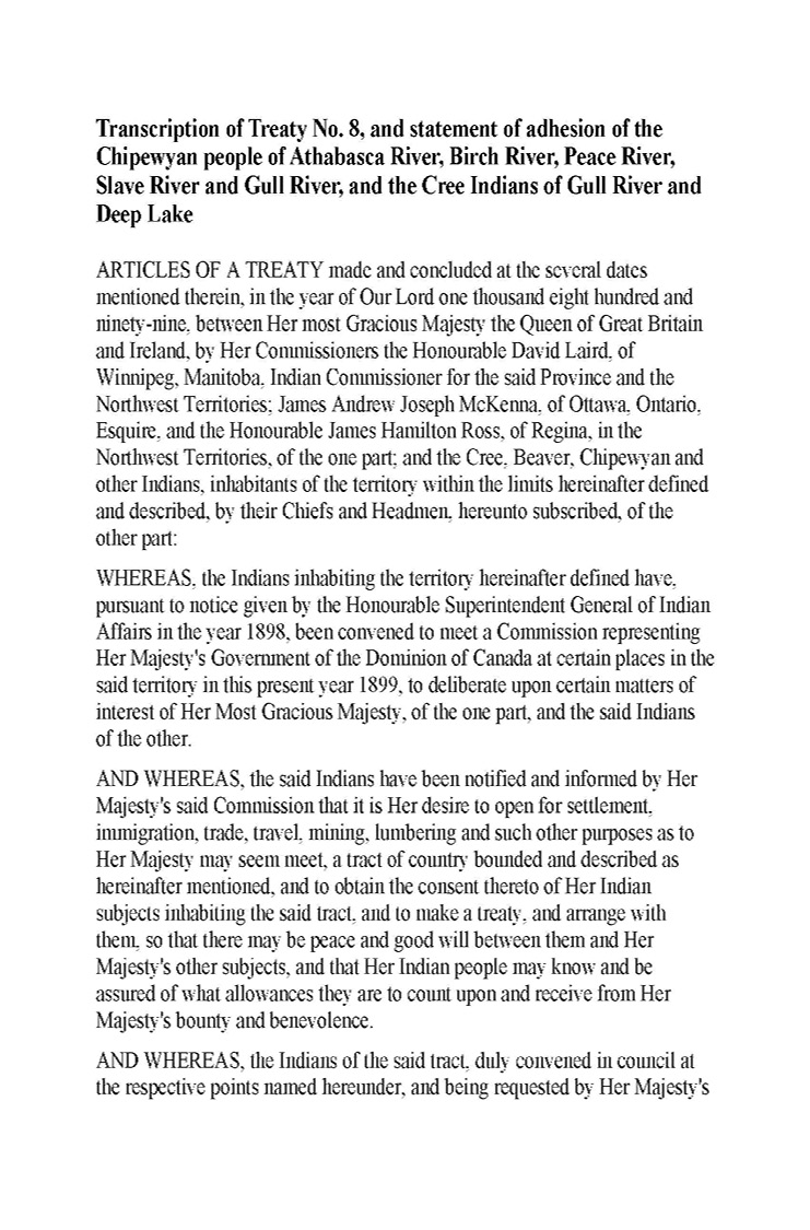 Archival Document 2.1 - Treaty No. 8 and Statment of Adhesion of the Chipewyan People of the Athabasca River, Birch River, Peace River, Slave River, and Gull River, and the Cree Indians of the Gull River and Deep Lake: Articles of a Treaty