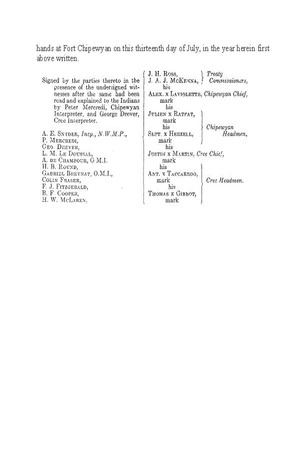 Archival Document 2.1 - Treaty No. 8 and Statment of Adhesion of the Chipewyan People of the Athabasca River, Birch River, Peace River, Slave River, and Gull River, and the Cree Indians of the Gull River and Deep Lake