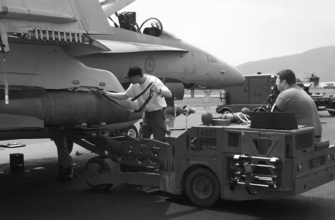 Flynn said that once the GBU-10 was approved, the pilots had them within days. “My compatriots from AETE [the Aeronautical Engineering and Test Establishment in Cold Lake] did all our checks and gave us clearance to go with the bomb in about a week, which is unheard of. They flew over, checked how the bomb would fit on the airplane, confirmed the engineering that it would be okay, and gave us a clearance.”24 Back at the Canadian base, the workload ramped up again for loads standards and trainings officers. Once the Canadians had the GBU-10s, it had to be determined how to configure the CF-18s’ antediluvian computers and train the crews in their use, while the other weapons in the Canadian inventory had to be assembled and built. The ground crews’ efforts were stellar given that staff was over-stressed and the unit undermanned.25